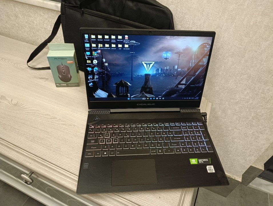 excalibur Gaming laptop i5 16GB 512GB GTX1650 4GB her türlü oyunu oynatir, her programı çalıştırir. Kasa kozmetik temiz. yanında şarj aleti, laptop çantası ve Gaming mouse hediye. kısaca özellikleri, ***Intel core i5 10. nesil H serisi işlemci ***16 GB DDR4 rem ***512 GB SSD disk ***Nvidia Geforce GTX1650 4 GB ekran kartı ***1920x1080 FULL HD ekran ***15.6 inç Bilgisayarın batarya durumu kötü, şarjda sorunsuz çalışıyor. Alan hayrını görsün.