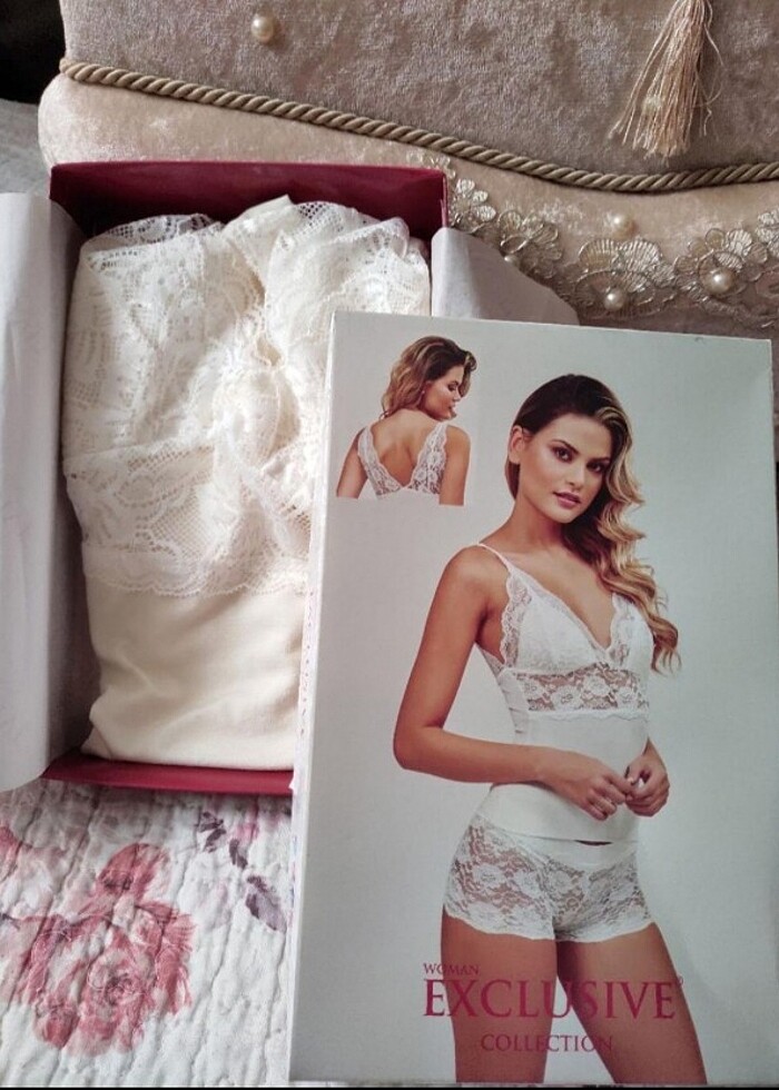 Exclusive marka ambalajında hiç kullanılmamış kadın iç çamaşırı. M beden, kırık beyaz rengi.