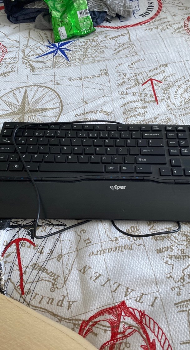 Exper marka siyah kablolu klavye, tam düzen ve sayı tuş takımıyla konforlu kullanım sunar. Bilek desteği mevcuttur. ️
