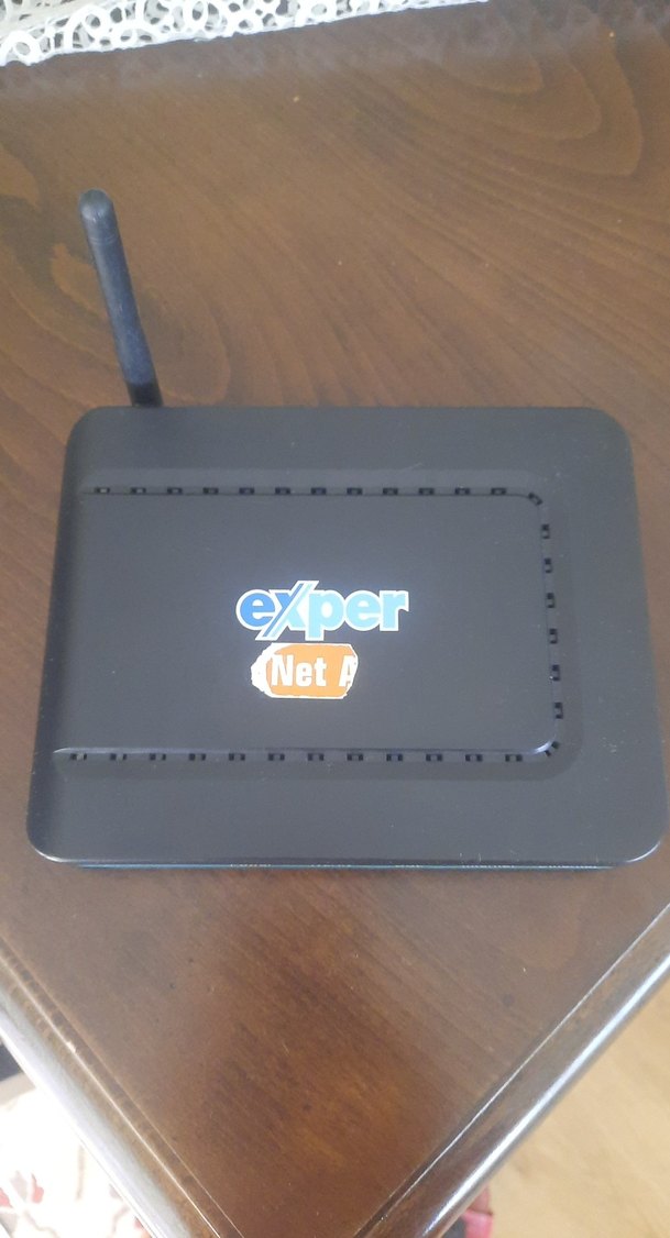 Tek antenli siyah Exper ağ yönlendirici, kompakt tasarımıyla güvenilir bağlantı sağlar. calisir durumdadir.