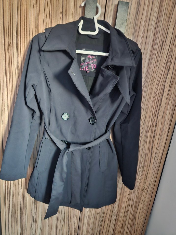 kalın sağlam soğuk geçirmez softshell kumaş xs-s uyumlu sayılı giyildi düğme yerleri değiştirildi bir tek onların izi var çok yakından bakınca son resimde ekledim onun dışında sorunsuzdur rengi çok koyu lacivert siyaha yakın