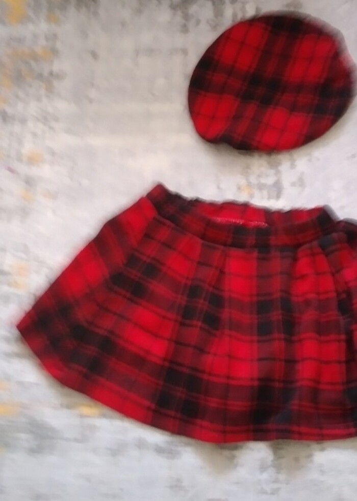 Ekoseli Etek Şapka Takımı