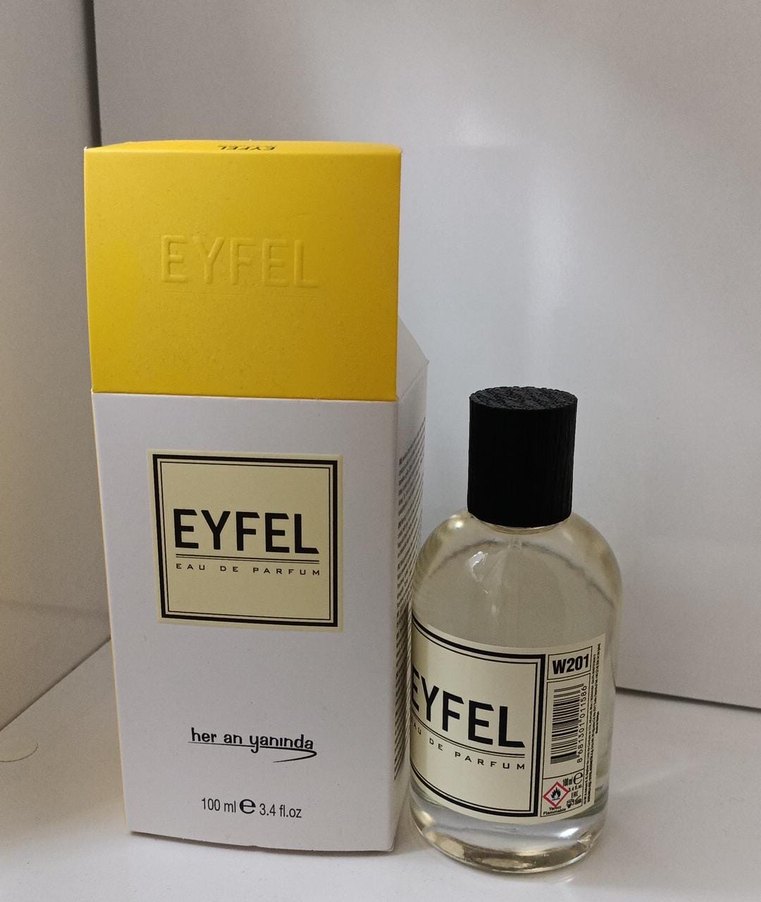 EYFEL kadın parfümü, 100 ml şişede taze bir koku sunar. Ambalajı sarı ve beyaz renktedir.