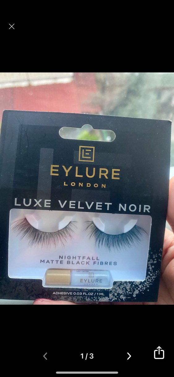 Eylure Luxe Velvet Noir takma kirpikler, mat siyah liflerle koyu ve şık bir görünüm sunar. Kolay uygulama için yapıştırıcı dahildir.