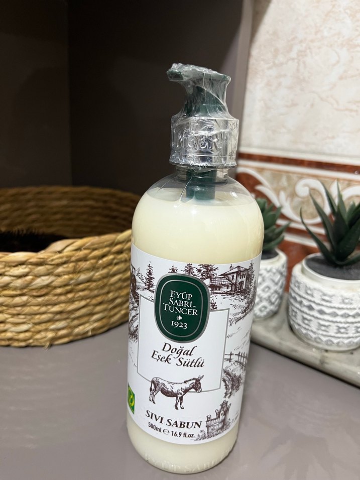 Eyüp Sabri Tuncer doğal eşek sütü içeren 500 ml sıvı sabun, nazik temizlik sağlar.