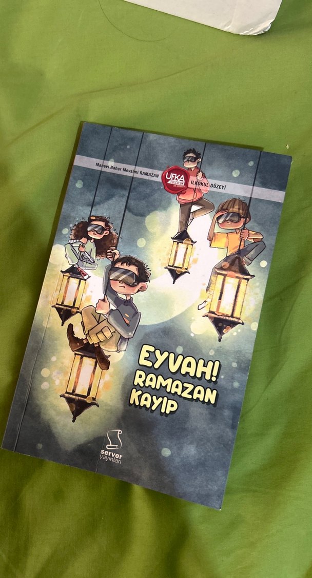 "Eyvah! Ramazan Kayıp" çocuk kitabı, Server Yayınları'ndan Ramazan temalı macera dolu bir hikaye sunuyor. Kapağında gece lambaları taşıyan çocuklar var.