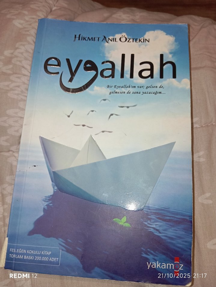 Hikmet Anıl Öztekin'in 'Eyvallah' kitabı, su üzerindeki kağıt gemi ve gökyüzündeki kuşlarla huzur ve düşünceyi simgeliyor.