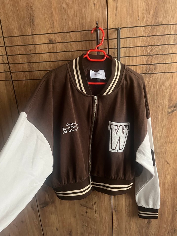 Kahverengi, beyaz panelli uzun kollu, fermuarlı, baskılı detaylı, bol kesim kadın ceket. Günlük kullanım için uygundur. Aldığımdan beri 1-2 defa giydim.Hırkada yıpranma,tüylenme herhangi bir sorun bulunmamaktadır.