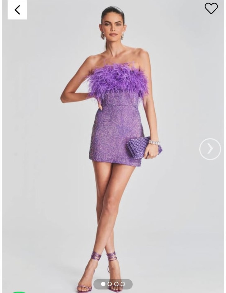 Deep Ateliler Payetli kumaş ve tüy detaylı, straplez yaka, mini boy, vücuda oturan mor abiye elbise. Parti için cesur ve göz alıcı bir tasarım. ✨
