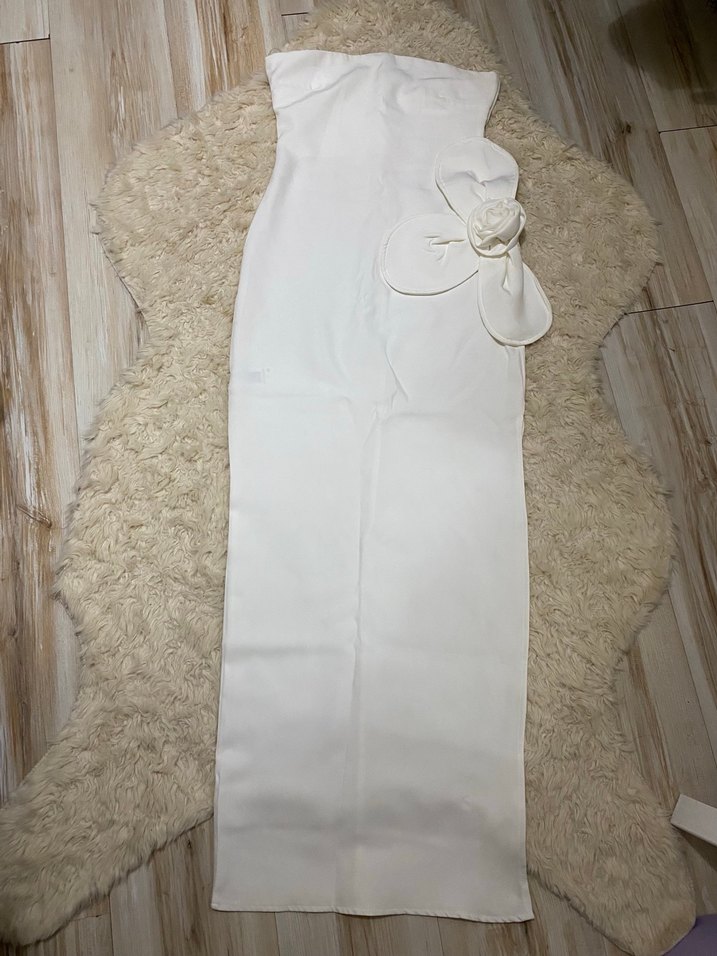eyyo Beyaz Straplez Uzun Kadın Elbise