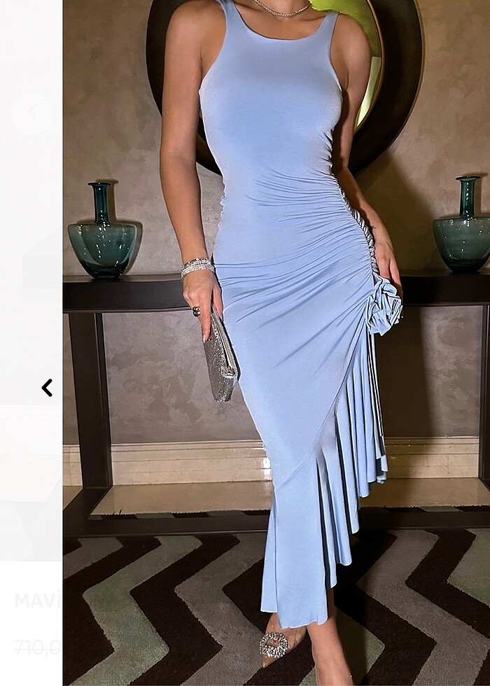 Eyyo mavi gül detaylı elbise