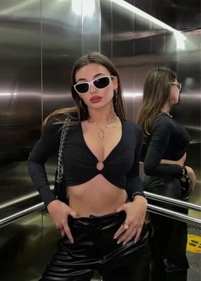 eyyo siyah dekolteli crop bluz