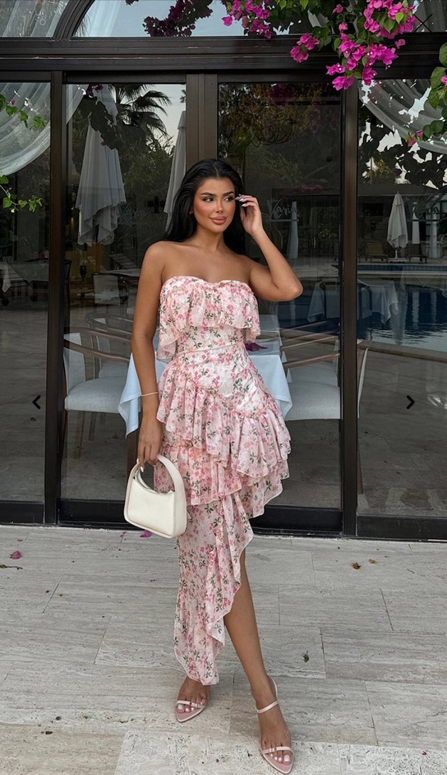 Eyyo Straplez Çiçek Desenli Elbise
