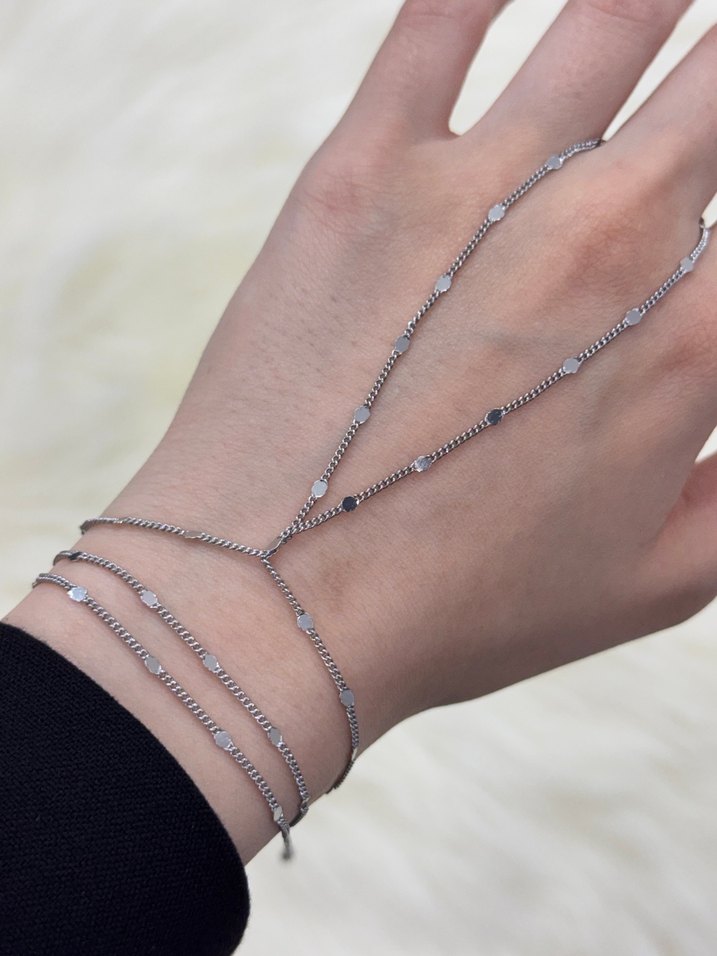 Gri renkte yılan desenli zincir detaylı kadın el zinciri, minimalist ve çağdaş tasarımla günlük kullanıma uygun.