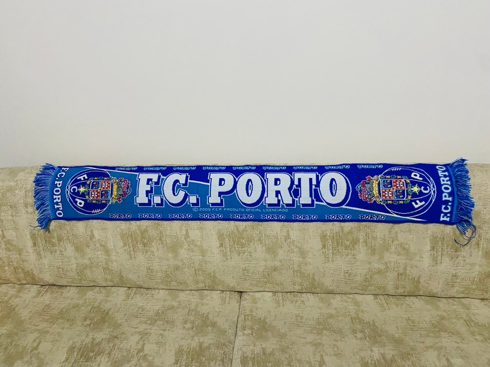 F.C. Porto logosu ve baskılı desenle renkli mavi plaj havlusu, counterculture tarzında. ️