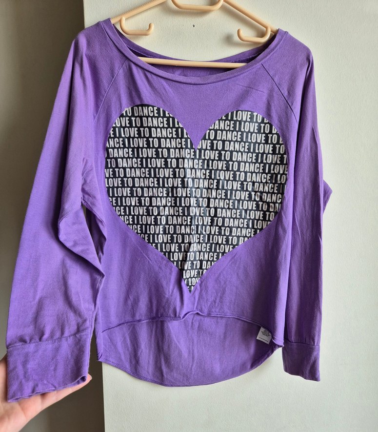 f&f 12-13 yaş kalpli uzun kol tişört mor renkte 1 2 kere kullanilmistir kusuru yok. boy olcusu gorsellerde mevcut iki koltuk arasi 42 cm.