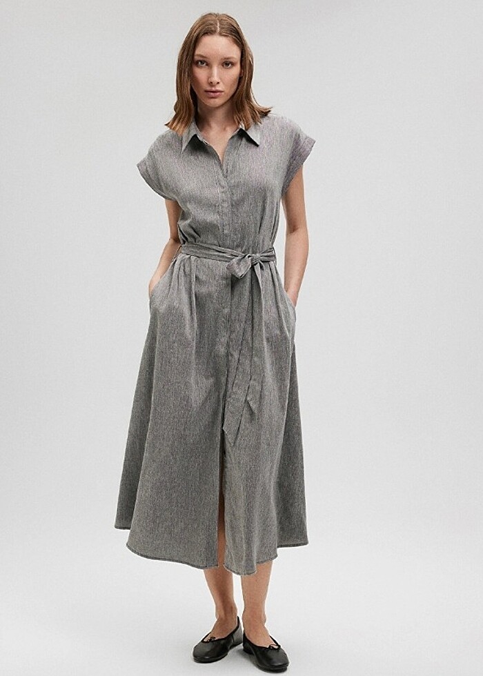 Mavi Jeans Keten Çan Uzun Gömlek Elbise