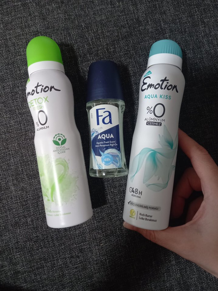 3 adet yeni ürün birlikte fiyat, 1 Fa roll on ve 2 Emotion deodorant set. GÖRSELDEKİLER GÖNDERİLECEKTİR. Farklı çeşitleri için sayfama bakabilirsiniz.