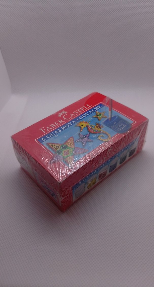 Faber-Castell guaj boya seti, 6 canlı renkten oluşur ve yaratıcı resim projeleri için uygundur. Kompakt kutuda kolay saklama sağlar.