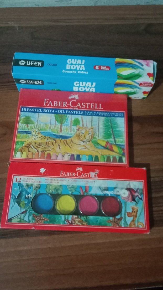 Faber-Castell pastel yağlı pasteller ve Lifen guaj boyalar canlı renklerle set halinde sunuluyor. Çizim ve boyama için uygundur. Guaj boya kullanılmıştır yarısı kalmıştır fotoğraftaki gibi. Diğerleri ise sıfırdır.