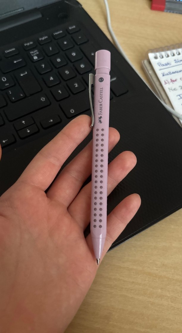 Faber-Castell pastel pembe renkte, yumuşak tutuşlu ve metal klipslidir. ✒️D&R ‘dan alınmıştır .