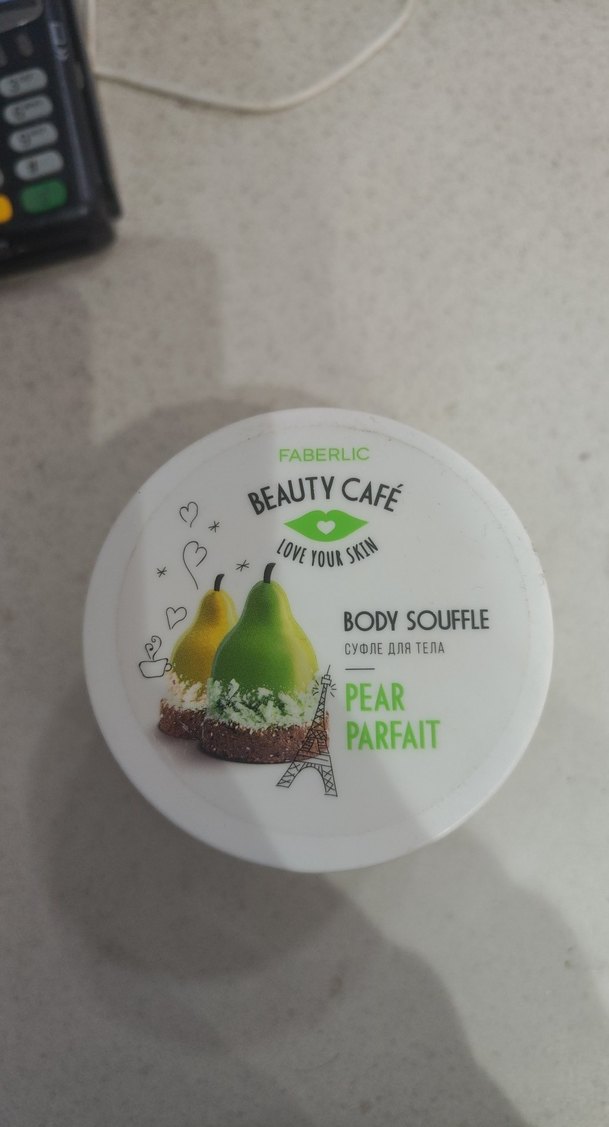 Faberlic Beauty Café Vücut Souffle, hafif ve köpüklü dokusu ile armut parfait kokusu sunar, cildi yumuşak ve besler.