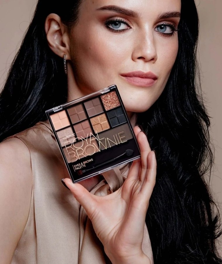 FABERLIC Mat ve simli koyu bej tonlarından oluşan göz farı paleti, çeşitli göz makyajları için uygundur. Hiç killanklmadı. Ambalajı bile duruyor