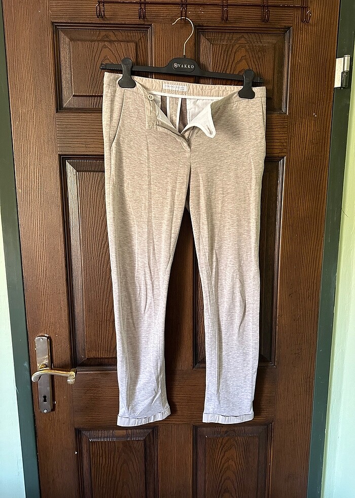 Çok az giyildi. Orijinal üründür. Yumuşak ve rahat bir yapısı var, vücudu sarıyor, paçalara doğru hafif bollaşıyor. Ölçü sorabilirsiniz. 38 beden giyiyorum bana tam oluyor.