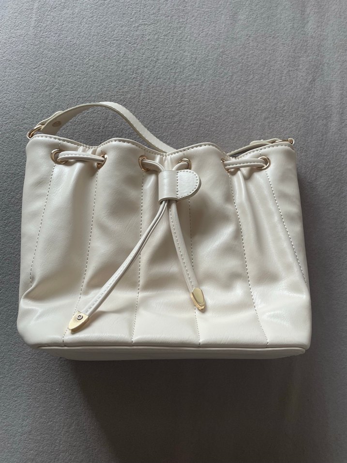 Fabrika Beyaz deri kemer detaylı kadın çanta, modern klasik tarzıyla günlük kullanıma uygun, desensiz ve Paris esintili klasik zarafeti yansıtıyor. En:20cm Boy:22cm