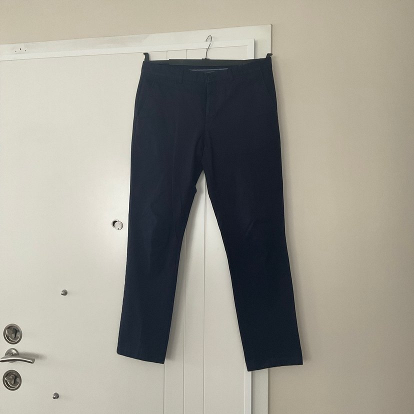 Lacivert renkli, regular fit ve normal boyda denim pantolon. Ofis için uygun, desensiz ve rahat şıklık sunar.