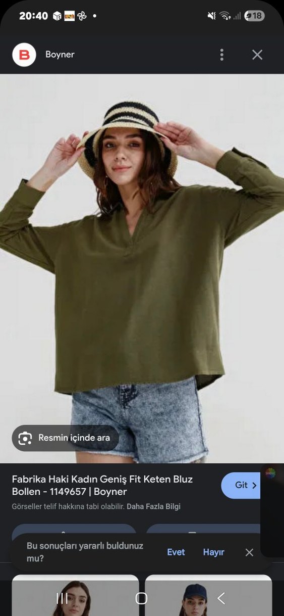 Pamuklu kumaştan, geniş kesim ve V yakalı haki renk bluz, rahat ve şık günlük kullanım için uygundur.