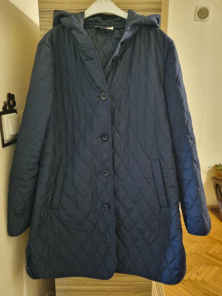 Düğmeli, kapüşonlu ve uzun kollu kadın mont, normal kesim ve midi boydadır. Sentetik kumaştan, günlük kullanıma uygundur.boy 85 cm göğüs 55 cm