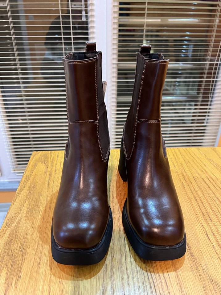 Fabrika Kahverengi deri platform topuklu kadın botlar, sokak stili ve çağdaş görünümü birleştirir, günlük kullanım için uygundur.