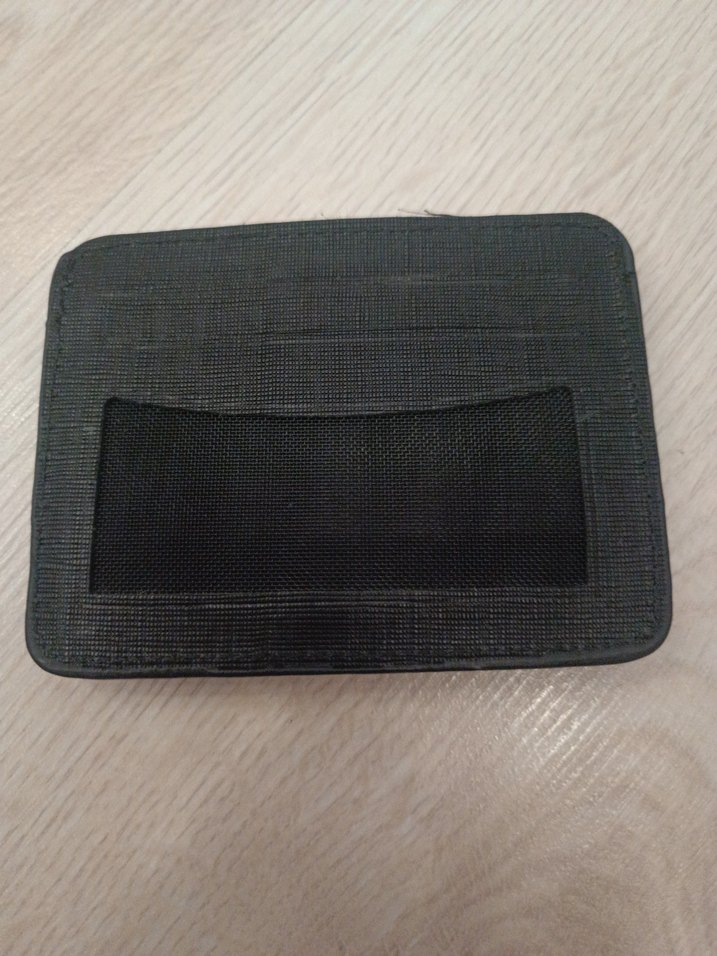 Siyah kadın cüzdanı, koyu sentetik kumaştan ve Velcro kapamalı. Günlük iş kullanımı için sade ve desensiz tasarım.