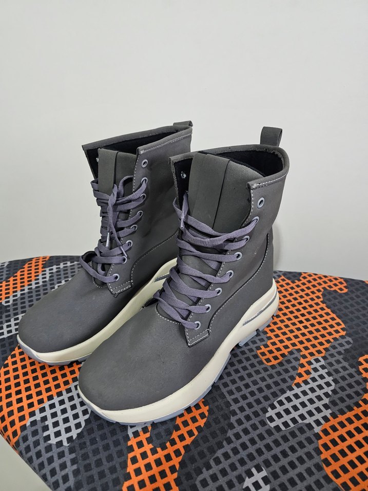 Gri renkli, bağcıklı ve desen içermeyenbot. Sokak stiline uygun, rahat ve trend görünümlü.hiç giyilmedi yeni. çok hafif bir bot. numarası 38 ama 39 uyumlu büyük geldiği için giyemedin