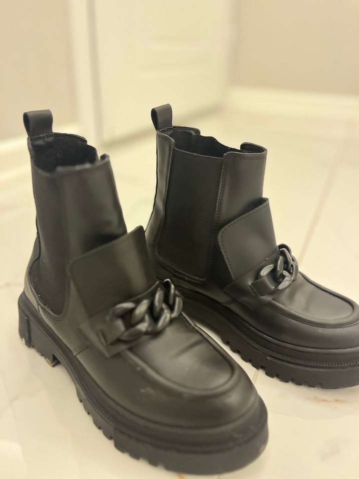 Fabrika Marka Zincir Detaylı Siyah Deri Kadın Bot