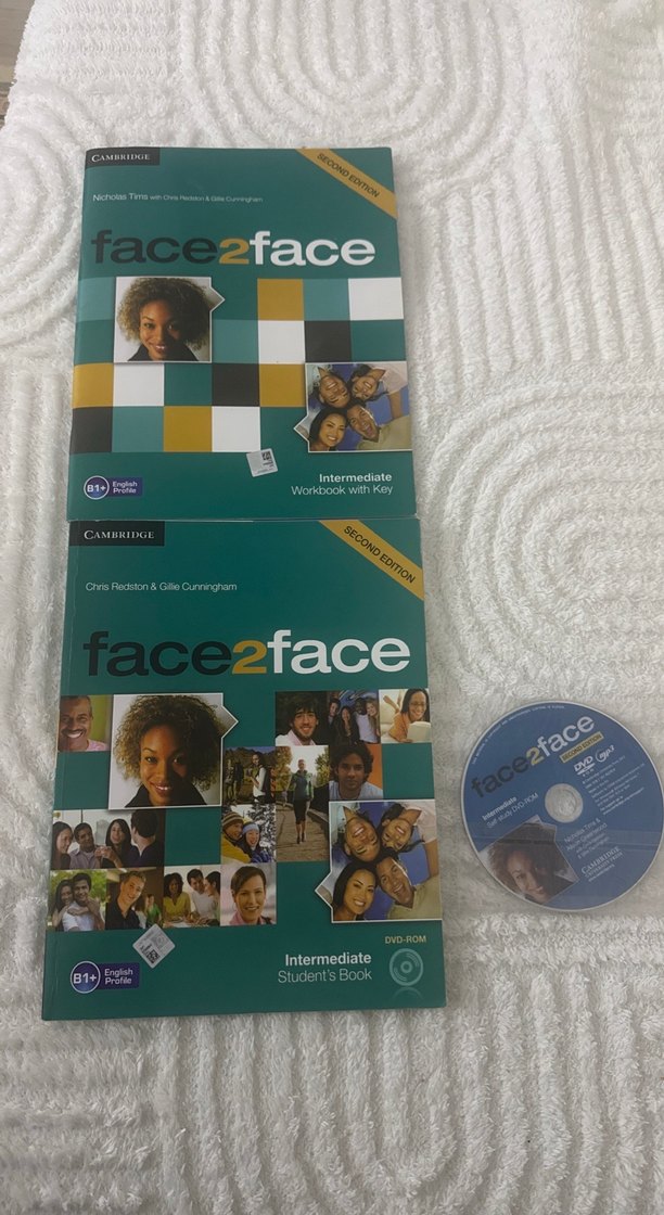 Cambridge yayınevinin face2face Intermediate seti, Student's Book, anahtarlı Workbook ve DVD-ROM içerir. B1+ İngilizce seviyesi için uygundur. İkisi de çok az kullanılmıştır.