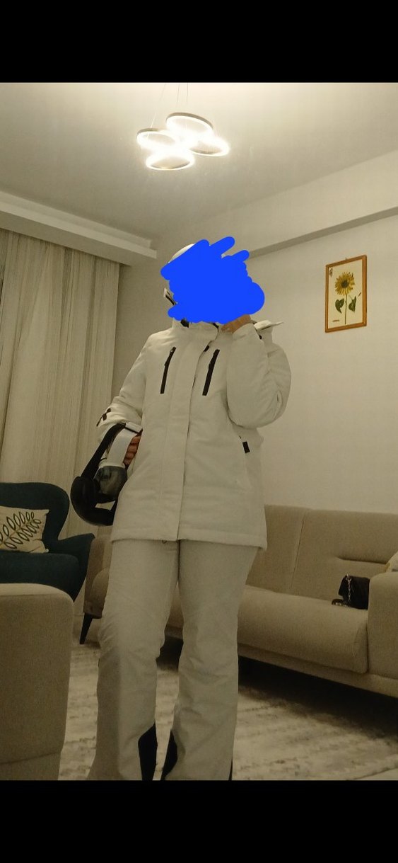 FactoFit Su İtici Beyaz Kapüşonlu Kayak Mont