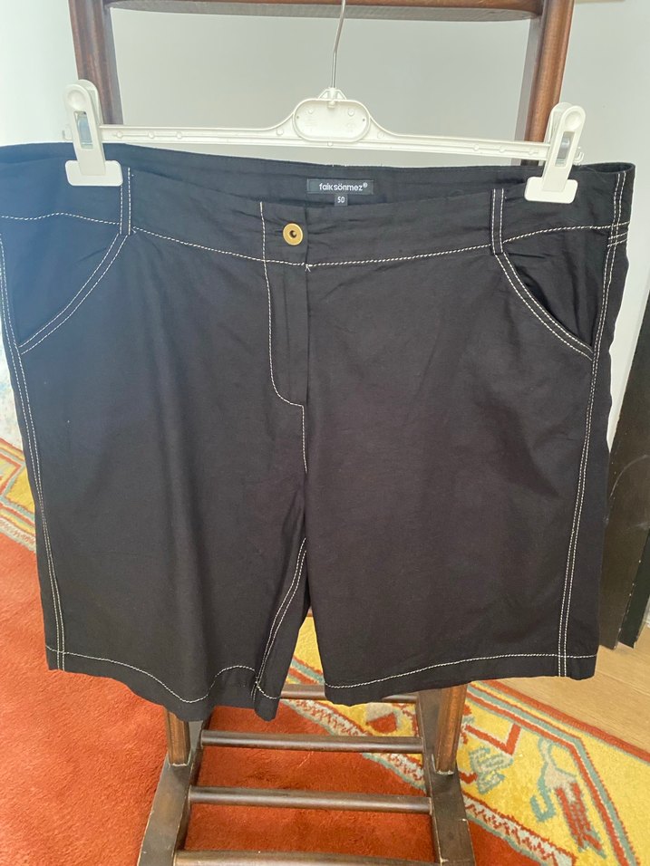 bol kesim ve kısa boyda kadın Bermuda şort. Günlük kullanım için rahat ve şık bir stil sunar. Bel 53 cm kalça 63 cm boy 55 cm