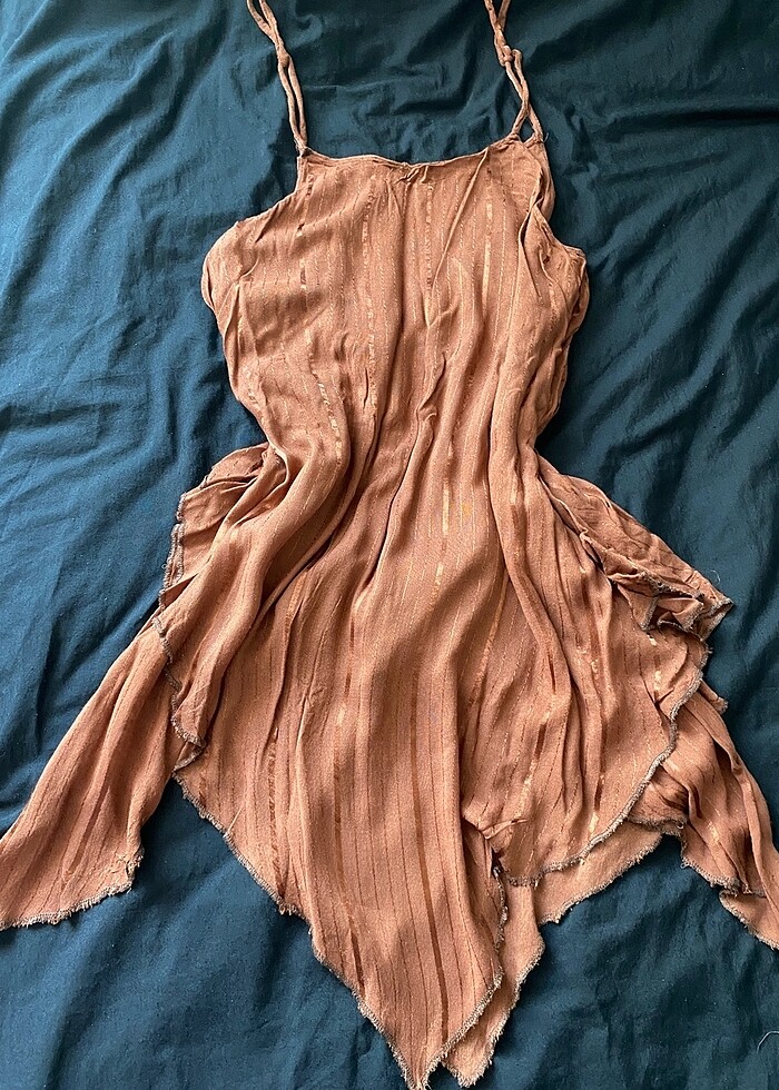 Asimetrik ve katlı bi kesime sahiptir, kemerle daha güzel durmaktadır. Bedeni yazmıyor ama s bedene hafif salaş, m bedene de tam olacağını düşünüyorum