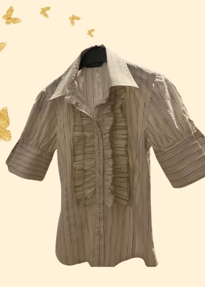 krem bej tonlarında, hafif simli, çizgili gömlek kol düğmelerini tercihe bağlı açık ya da kapalı şekilde kullanabilirsiniz , temiz ve ütülü gönderim yapıyoruz lakin paketlemeye bağlı ürünlerde kırışıklık olabilir. Üzerinizde yeniden hayat bulsun✨