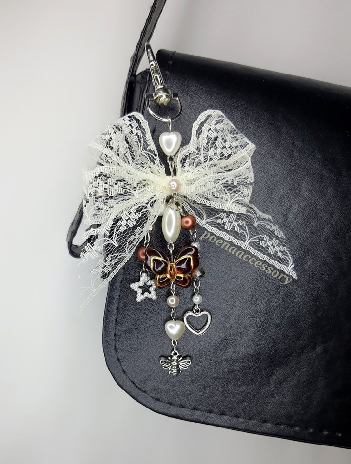 Fairycore vintage dantel fiyonk çanta charmı