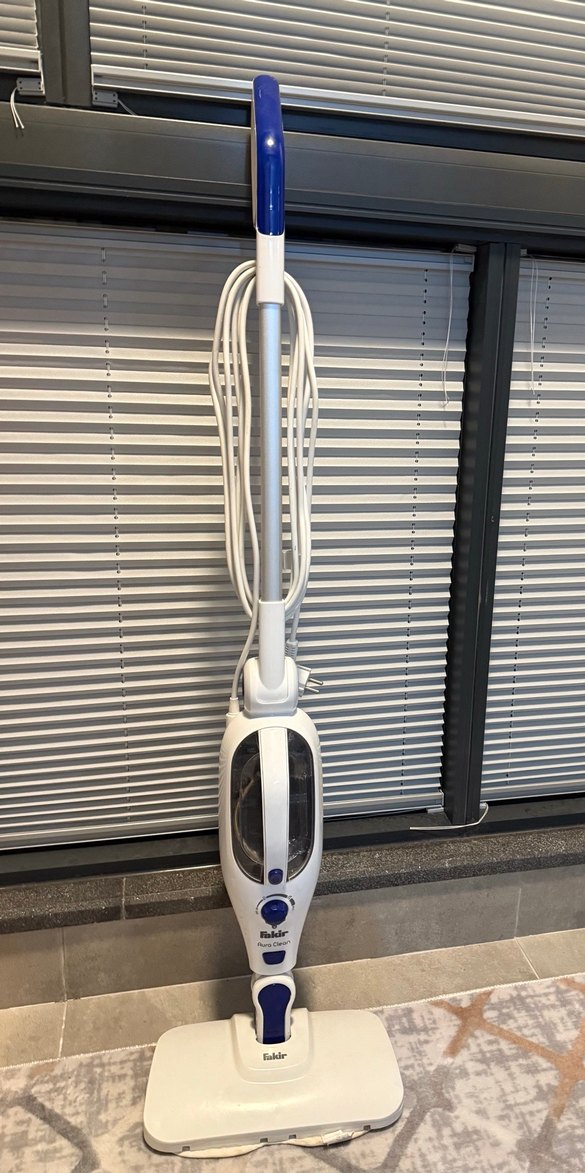 Beyaz ve gri renkte, saplı ve kablolu buhar makinesi , zeminleri etkili şekilde temizlemek için uygundur.