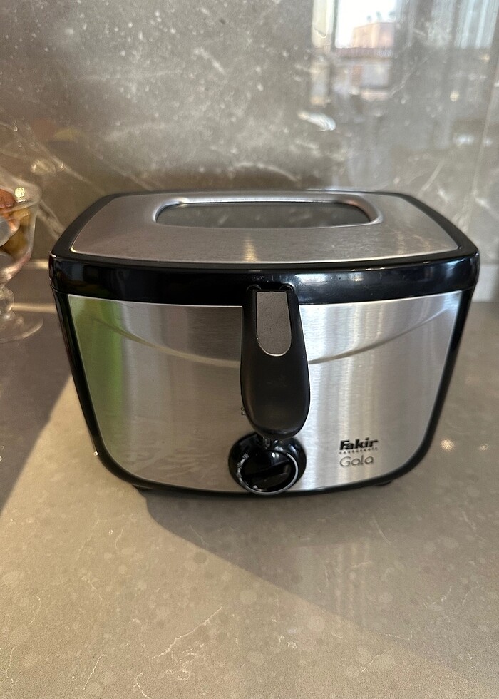 Küçük, kullanışlı. çok kısa bir süre kullanıldı. hasarı yok. sadece içinde temizlenmesine rağmen ufak yağ lekeleri var. ihtiyaç fazlası #airfry #fritöz