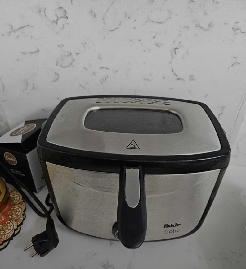 Fakir Golo fritöz, gri paslanmaz çelik gövde ve siyah kulp ile kullanımı kolay tasarıma sahiptir. Etkili kızartma yapar. Ürün 1 kez kullanıldı 7 kişilik aileye küçük geldiği için hiç bir şey yapılmadı kargoda gelirken tutacak kısmının yanı biraz kırıldı ama çalışmasında bir sıkıntı yok ürünü zararına veriyorum üniversiteye gideceğim için pazarlık yapılır