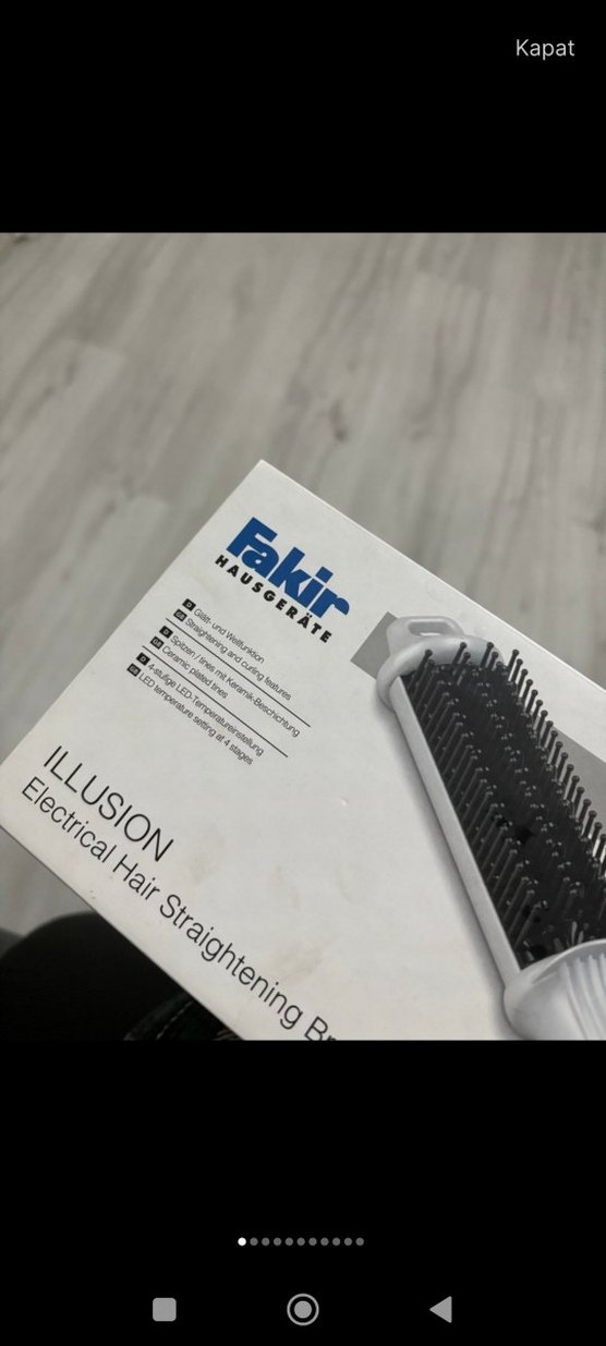 Fakir Illusion beyaz saç düzleştirici fırça, parlak yüzeye sahip olup saçları kolayca düzleştirmek için fırça ve düzleştirici özelliklerini bir arada sunar.✨