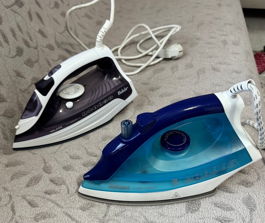Beyaz ve gri renkte buharlı ütü, ayarlanabilir ayarları ve kullanışlı tutma yeri ile pratik ütüleme sağlar. İki adet ütü çalışıyor sıkıntısı yok arzum ve fakir