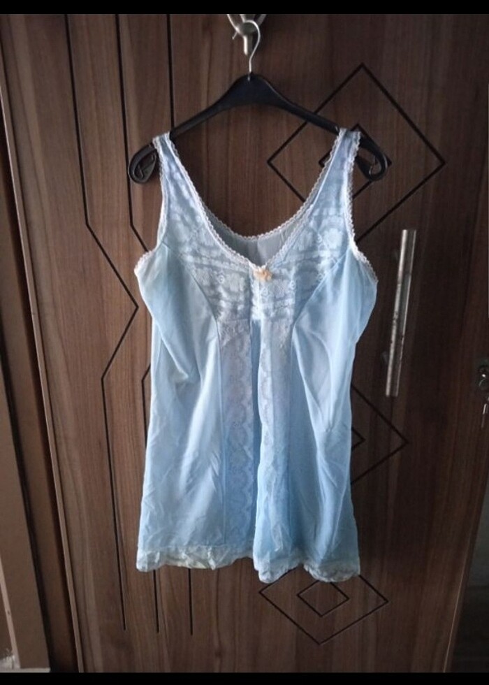 Tamamı transparan gecelik bebe mavisi rengi. V yaka