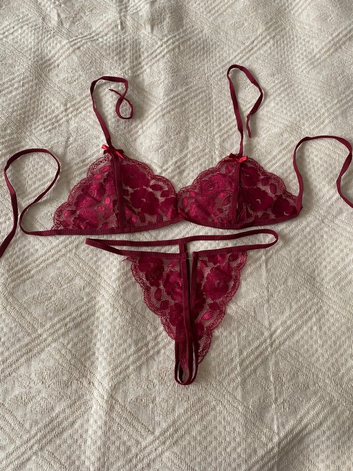 Bordo renkte, nakışlı detaylara sahip vintage bohem tarzda sütyen ve tanga takımı. Kumaşı narin ve yumuşaktır. Hiç kullanılmamış, sıfır üründür. mürdüm rengi ve çok zarif dantel detayları mevcuttur. Kumaşı oldukça yumuşak ve kalitelidir. Standart/S-M beden uyumludur.