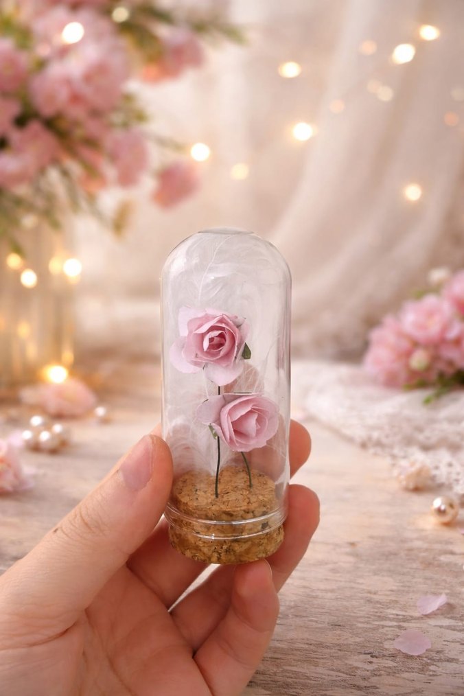 cam fanusun icinde 2 gül 1 tüy vardır istenilen adette hazırlanır